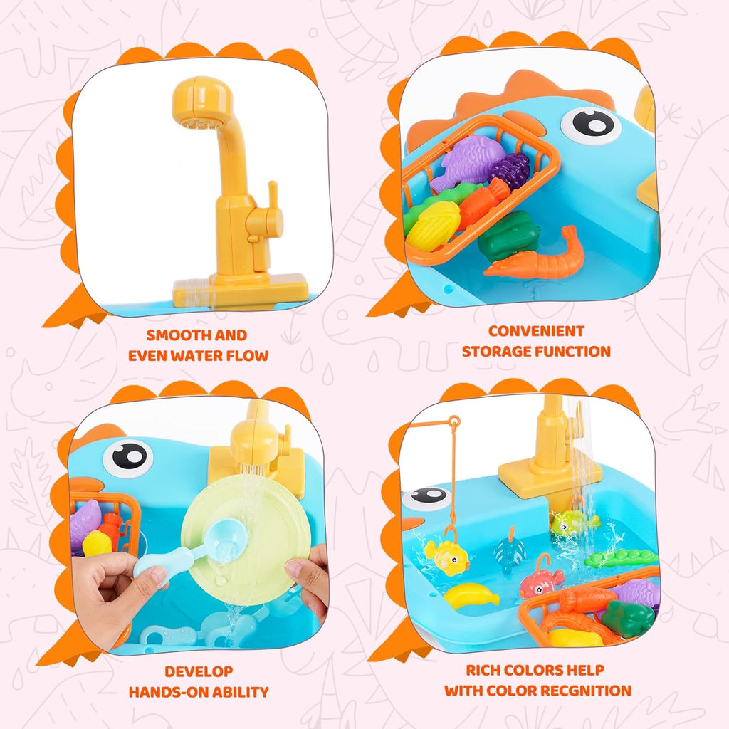 Looking for the perfect blend of fun and learning? This electric dinosaur kitchen sink toy features a real water circulation system and fishing game – giving your kids hours of imaginative and educational play!